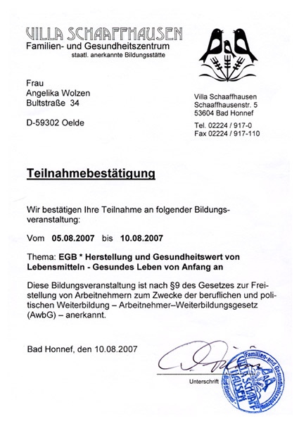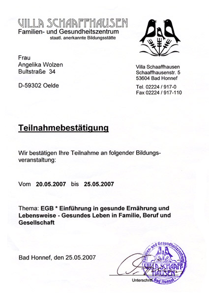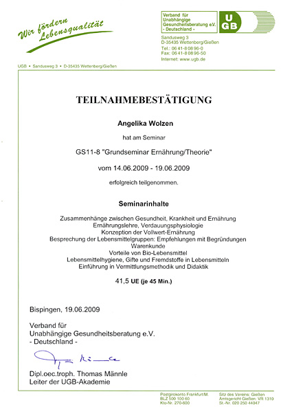 die Ausbildung habe ich an der Reformhaus-Fachakademie Gesundes Leben