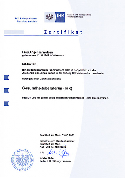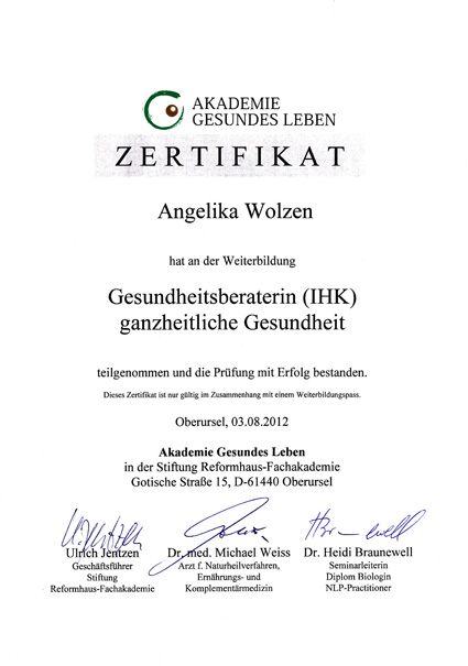 Darüber hinaus bin ich IHK geprüfte ganzheitliche Gesundheitsberaterin,