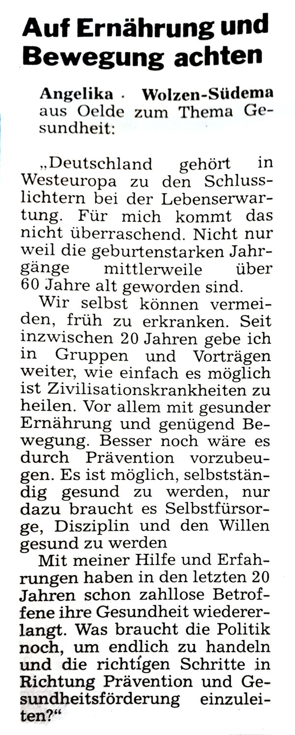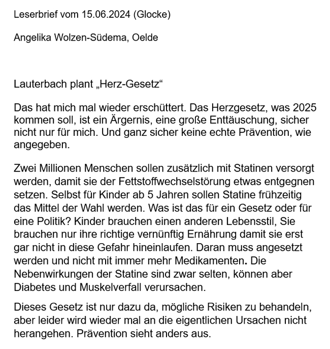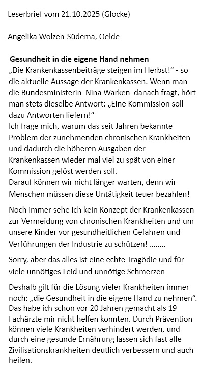 Leserbrief aus „Die Glocke" von Angelika Wolzen-Südema
